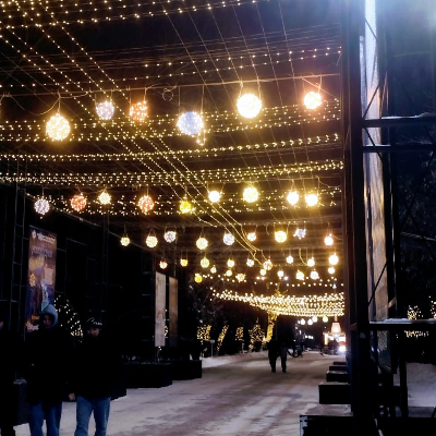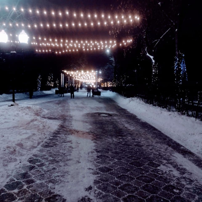 In winter, the square transforms: in the center, a huge New Year’s tree is installed, and around it, there are ice sculptures and children’s slides.