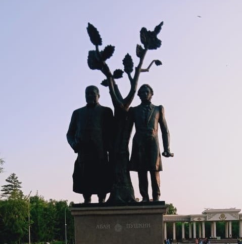 If you look carefully, you will notice monuments and sculptures: for example, along the main pedestrian path stands a statue commemorating Sabit Mukanov, an important figure of Kazakhstan’s literature.